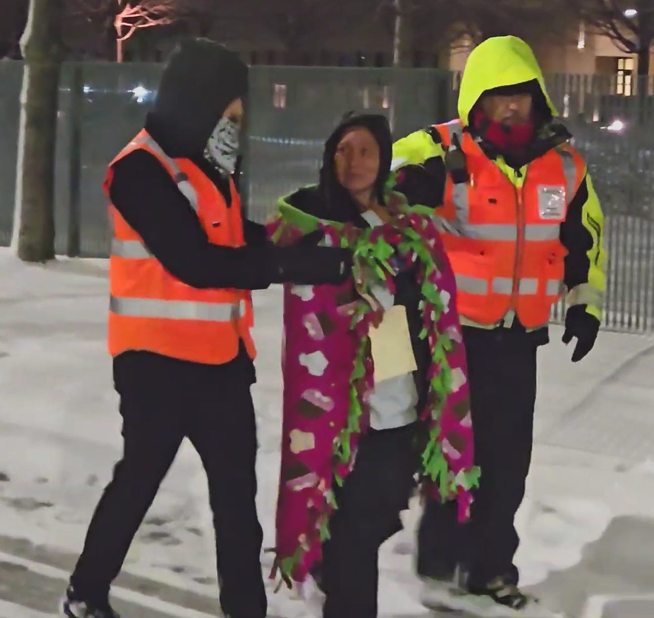 Immediate Aid: Volunteers provide thermal blankets, dry socks, warm meals, and burner phones.
