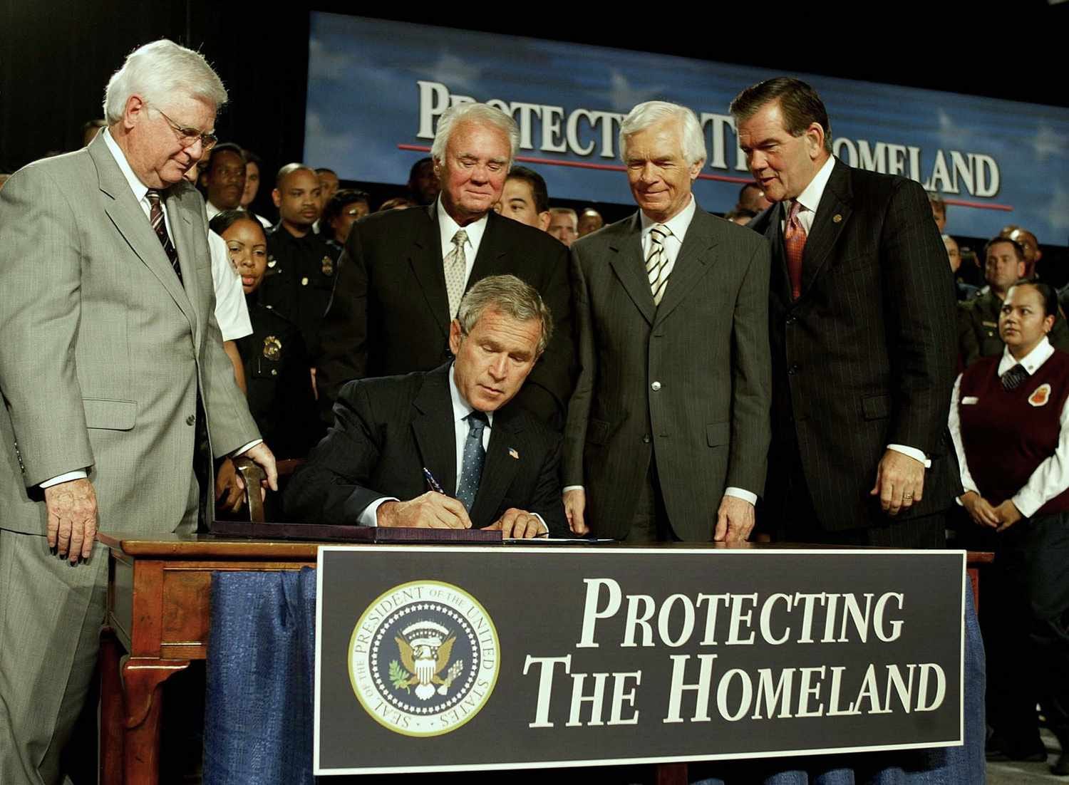 The Homeland Security Act of 2002 was the vehicle. The largest federal restructuring since the war.